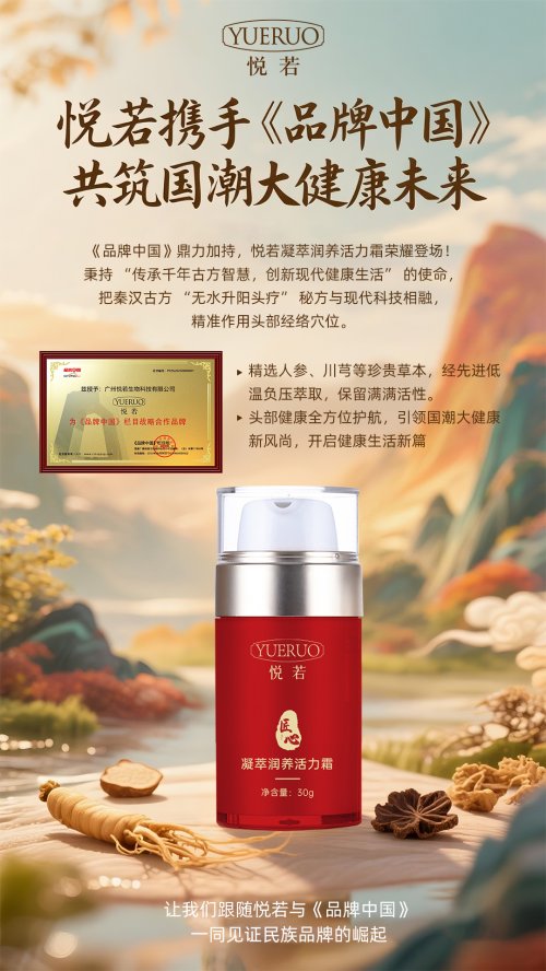 瞄准这一痛点,悦若品牌以中医“阳气理论”为根基,创新推出凝萃润养活力霜及配套的无水升阳头疗体系,通过“干敷热导+草本渗透”技术,直击头部健康核心问题。